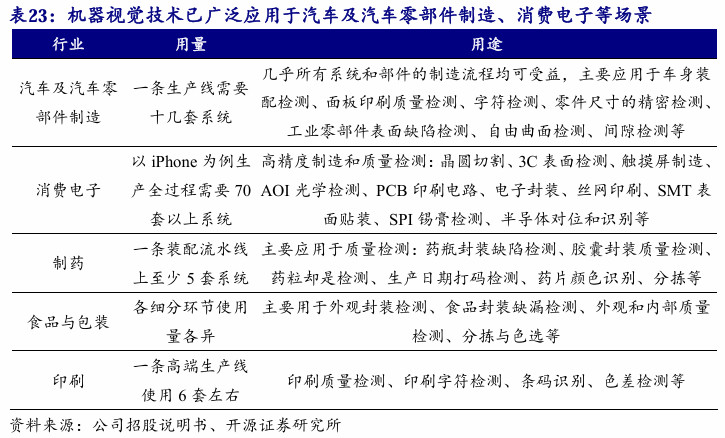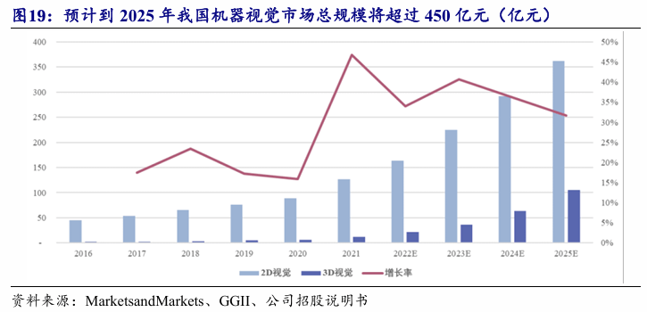 我国机械视觉市场总规模估计2025年将超450亿元,公司相关营业增速较快目前,机械视觉手艺已普遍使用于汽车及汽车零部件制制、消费电子、制药、食物取包拆、印刷等行业的上述使用场景。