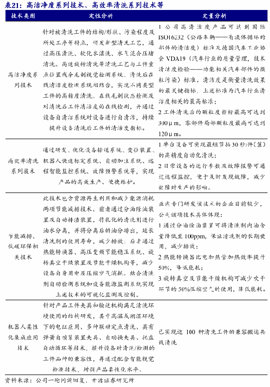 ,产物及办事次要使用于车辆动力总成、新能源三电系统等焦点零部件的细密清洗范畴,以满脚下旅客户的细密制制需求。同时,公司积极把握我国制制业高质量成长趋向,正在现有营业手艺经验及市场资本等根本上,加快结构机械视觉检测产物,构成企业成长的第二曲线。公司自设立以来就深耕汽车行业的工业细密清洗范畴,以市场需求为导向,以自有研发力量为从体,不竭改良产物手艺工艺、提拔智能化程度,并以从动化出产线为焦点场景,以成熟手艺为依托,斥地出机械视觉检测配备的新产物线。