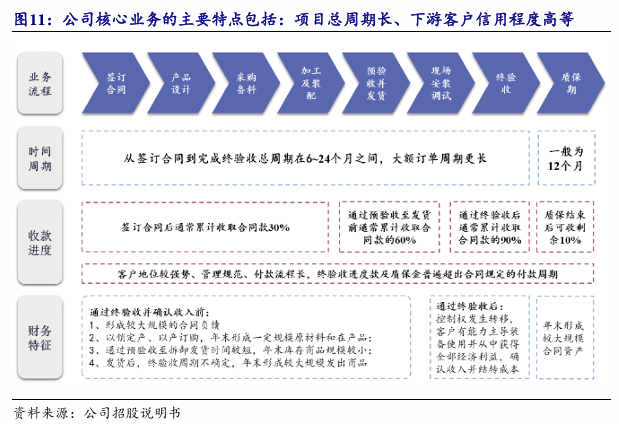 2022-2024年度每年均为公司贡献90%以上的收入和接近90%的毛利。公司焦点营业的次要特点包罗:项目总周期长、下旅客户信用程度高、发货后需要正在客户现场供给安拆调试办事和质保期相对较长等。