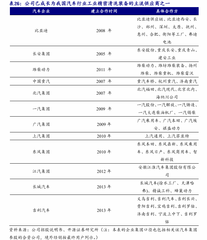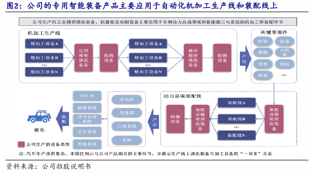 。公司的工业细密清洗配备次要使用于保守燃油汽车、夹杂动力车辆的动力总成和新能源车辆“三电”系统的焦点零部件出产线,正在洁净度、出产节奏、智能化程度等方面均达到国际领先程度。凭仗多年手艺堆集,公司还拓展出机械视觉检测设备产物线,能满脚下业愈加精益、高效、智能的制制需求。公司秉承“引领中国工业细密清洗行业成长,中国第一、世界领先”和“成为中国第一、具有国际程度的机械视觉检测设备的制制商”的企业愿景,手艺办事能力凸起,已取得行业支流客户的普遍承认。公司已取包罗比亚迪、长安集团、吉利汽车、长城汽车、广汽集团、上汽集团、一汽集团、春风汽车、中国沉汽、洛阳一拖等支流车企(集团)和潍柴动力、东安股份、爱柯迪、文灿股份、天润工业、陕士特、玉柴股份、吉孚传动、小康动力等大型车辆动力总成配套企业成立持久、不变的合做关系。同时,公司的机械视觉检测设备正在一汽集团、比亚迪、潍柴动力、上汽集团、长城汽车等汽车行业客户和美的集团、东芝家电、奥马冰箱等家电行业客户获得使用。