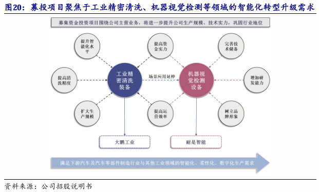 本次募集资金投资项目紧紧环绕着公司从停业务制定,顺应汽车及汽车零部件制制行业的智能化、柔性化、数字化出产需乞降高质量制制的成长趋向,沉点聚焦于次要客户群体正在工业细密清洗、机械视觉检测等范畴的智能化转型升级需求。通过本次募集资金投资项目,公司将提拔手艺实力、补齐成长短板,进一步巩固公司正在工业细密清洗范畴的市场地位,同时强化正在机械视觉检测范畴的研发实力和手艺储蓄,提拔全体营业规模。