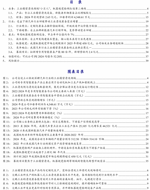 2024)均值为52。28X,PE(TTM)均值为38。03X。公司是我国领先的工业细密清洗范畴公用智能配备出产商,是高新手艺企业、国度级专精特新“小巨人”企业、国度级新一代消息手艺取制制业融合成长试点示范企业。公司加快结构机械视觉检测产物,构成企业成长的第二曲线月,公司研发的“AI视觉正在铸件检测系统的使用”手艺被中国锻制业协会认定正在锻制件出产的全体质量检测提拔上达到国际先辈程度。跟着公司募投项目进一步巩固公司正在工业细密清洗范畴的市场地位,同时强化正在机械视觉检测范畴的研发实力和手艺储蓄,提拔全体营业规模,前景较好。5风险提醒汽车行业周期性波动风险、市场所作加剧风险、新股破发风险。